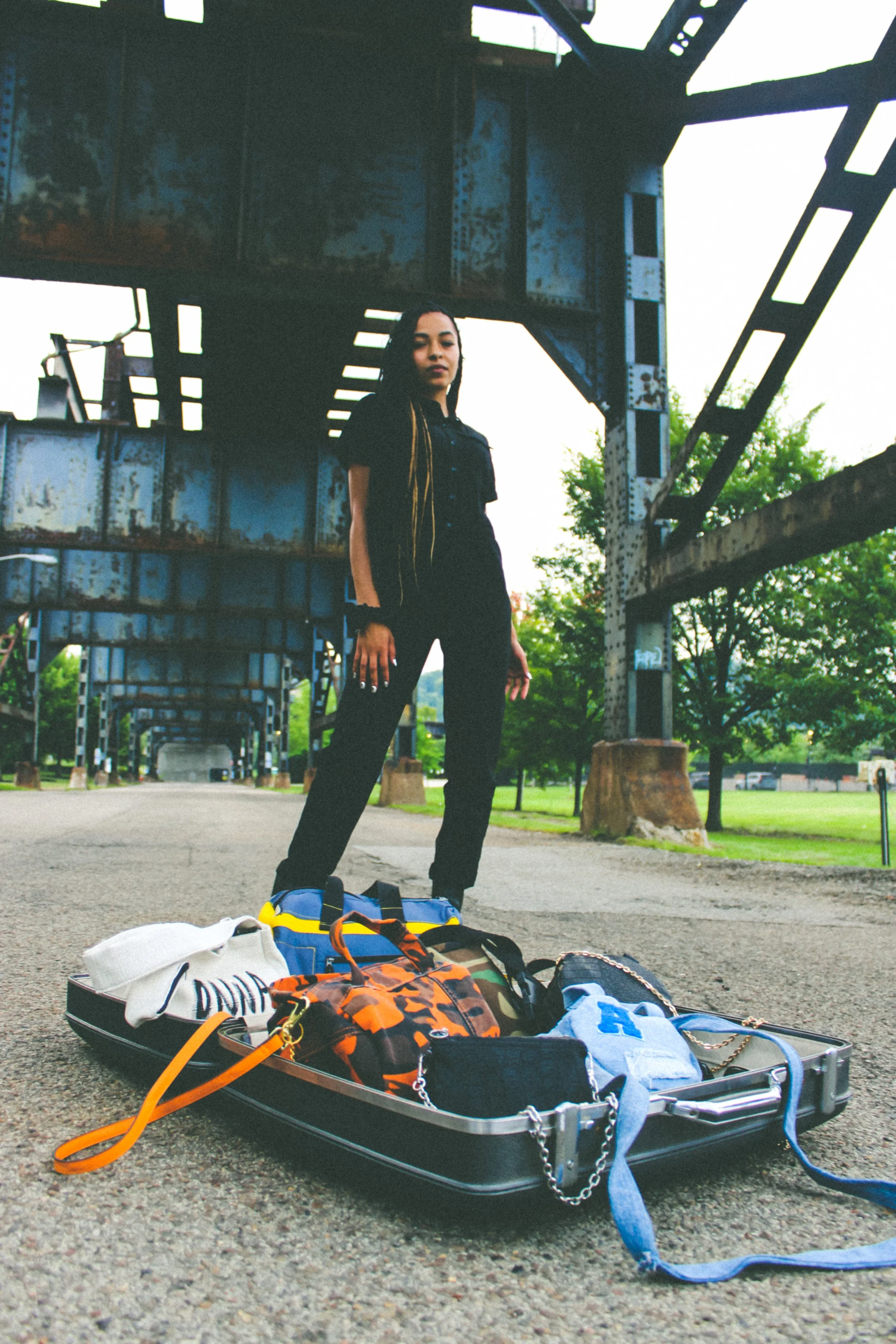 Concept: Collaboration between creatives to curate a look-book for for the brand “onna” to launch her new line of custom bags. the brand embracess individuality and urban style from fully recycled materials. onna is a sustainable brand that is handmade, handpicked, and reworked for the consumer.